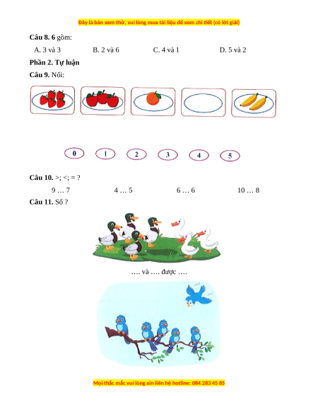 Câu 8. 6 gồm: A. 3 và 3 B. 2 và 6 C. 4 và 1 D. 5 và 2 Phần 2. Tự luận Câu 9. Nối: