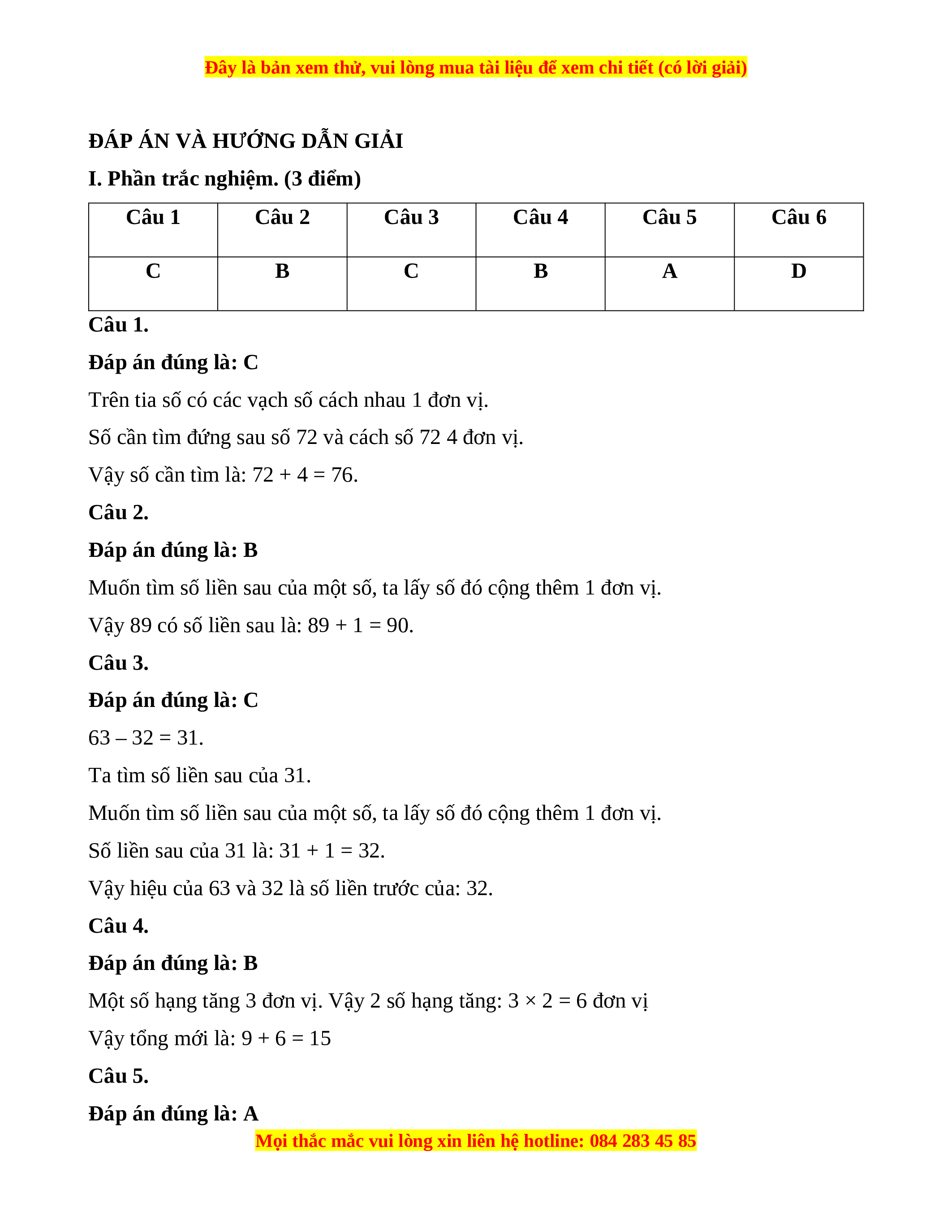 Vậy số cần tìm là: 72 + 4 = 76. Câu 2. Đáp án đúng là: B