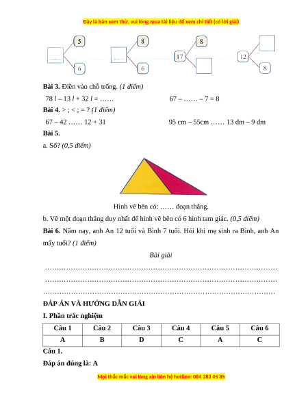 I. Phần trắc nghiệm Câu 1 Câu 2 Câu 3 Câu 4 Câu 5 Câu 6 A B D C A C Câu 1. Đáp án đúng là: A