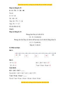 Phong cần cho Huy số viên bi để hai bạn có số viên bi bằng nhau là: 6 : 2 = 3 (viên bi) Đáp số: 3 viên bi II. Phần tự luận Bài 1. Bài 2. 9 + 5 = 14