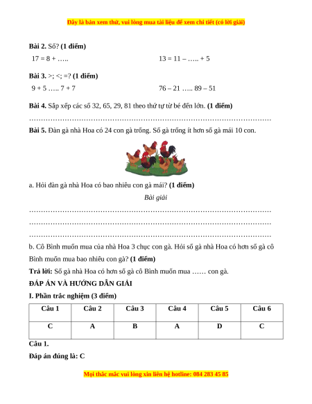 a. Hỏi đàn gà nhà Hoa có bao nhiêu con gà mái? (1 điểm) Bài giải