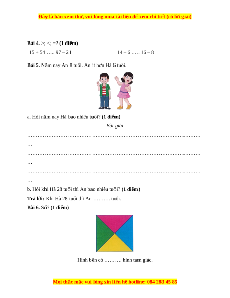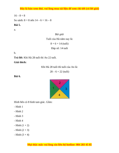 Bài 5. Năm nay An 8 tuổi. An ít hơn Hà 6 tuổi.