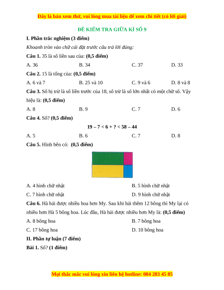 ĐỀ KIỂM TRA GIỮA KÌ SỐ 9