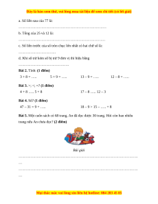 Bài 2. Tính: (1 điểm) 3 + 8 = ….. 5 + 9 = ….. 13 – 9 = ….. 12 – 8 = …..