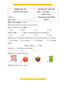 LỚP 3 - NĂM HỌC ………… MÔN: TOÁN Lớp: 3 ...