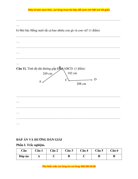 Câu 11. Tính độ dài đường gấp khú B .c A BCD. (1 điểm) 249 cm 102 cm . C . D A . 208 cm