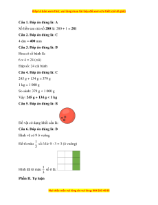 Câu 4. Đáp án đúng là: C 245 g + 134 g = 379 g 1 kg = 1 000 g So sánh: 379 g < 1 000 g