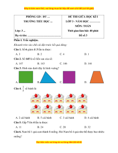 LỚP 3 - NĂM HỌC ………… MÔN: TOÁN Lớp: 3 ...