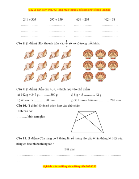Phần II. Tự luận Câu 7. 241 + 297 + 659 − 402 − 305 359 203 68 546 656 456 334 Câu 8. Câu 9.