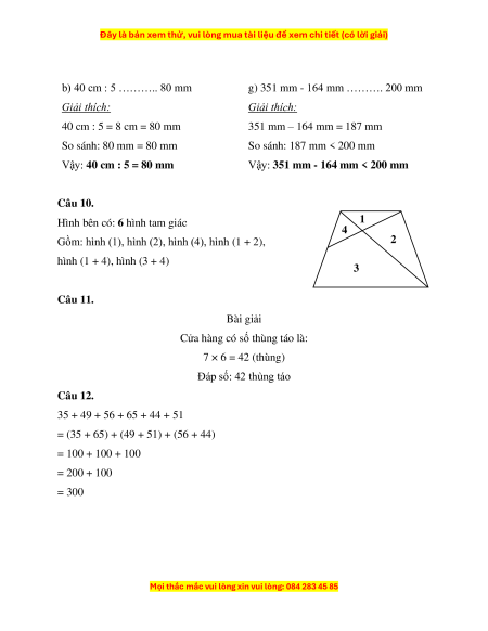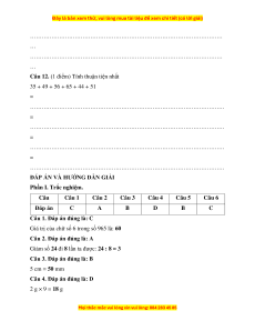 Câu 12. (1 điểm) Tính thuận tiện nhất 35 + 49 + 56 + 65 + 44 + 51 =