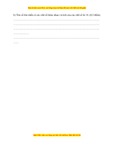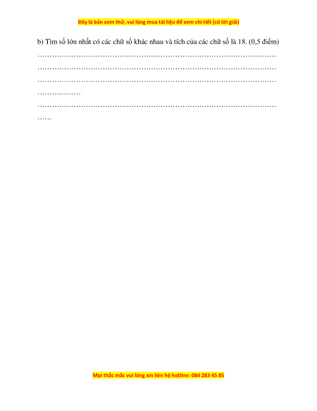 b) Tìm số lớn nhất có các chữ số khác nhau và tích của các chữ số là 18. (0,5 điểm)