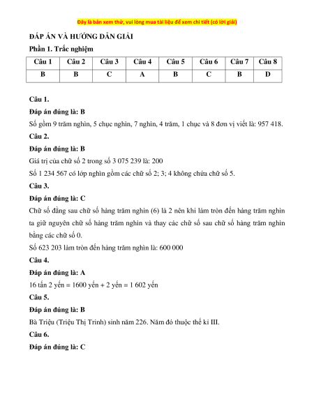 Câu 3. Số 623 203 làm tròn đến hàng trăm nghìn là: A. 623 200 B. 700 000 C. 600 000 D. 620 000
