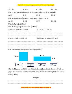Câu 11. Năm nay bố Hà 36 tuổi. Số tuổi của bố ít hơn số tuổi của bà là 27 tuổi và