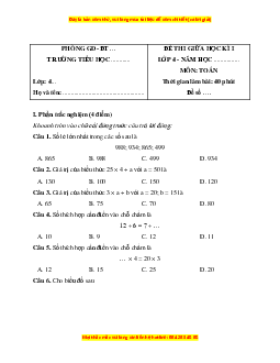 LỚP 4 - NĂM HỌC ................ MÔN: TOÁN Lớp: 4...
