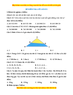 Câu 5. Số 1 243 thuộc dãy số: (0,5 điểm) A. 10, 20, 30, 40, 50, … B. 0, 2, 4, 6, 8, … C. 0, 5, 10, 15, 20, … D. 1, 3, 5, 7, 9, …