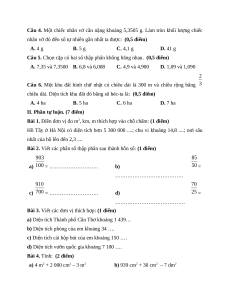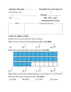 Câu 1. Giá trị của chữ số 5 trong số thập phân 1,05 là: (0,5 điểm) A. 5 B. C. D.
