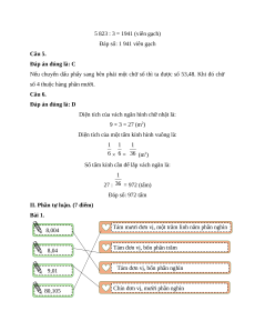 Câu 4. Có 5 823 viên gạch xếp đều lên 9 xe tải. Hỏi 3 xe đó chở được số viên gạch là: (0,5 điểm) A. 3 445 viên B. 2 520 viên C. 1 941 viên D. 1 210 viên