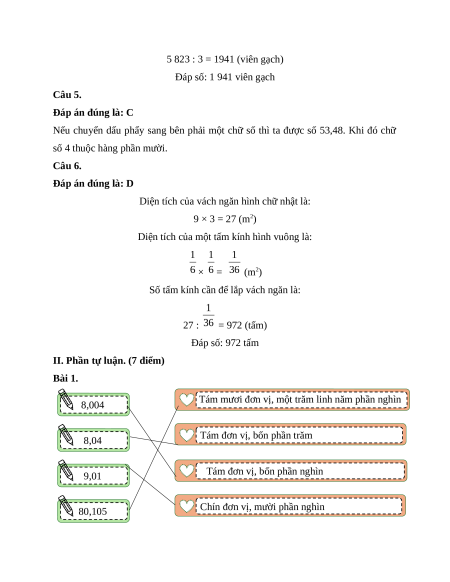Câu 5. Cho số thập phân 5,348. Nếu chuyển dấu phẩy sang bên phải một chữ số