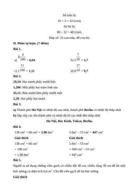 Bài 1. Viết hỗn số thành số thập phân (1 điểm) a)