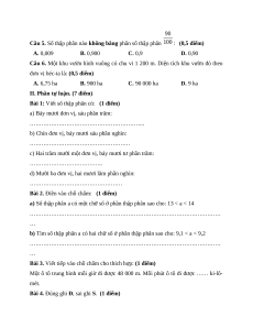 Câu 5. Số thập phân nào không bằng phân số thập phân : (0,5 điểm) A. 0,009 B. 0,900 C. 0,9 D. 0,90