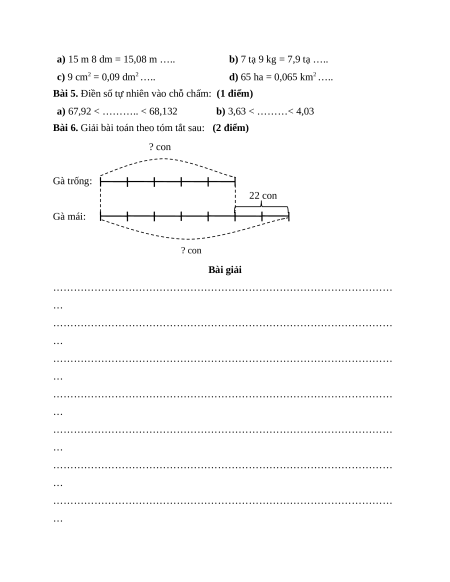 Bài 5. Điền số tự nhiên vào chỗ chấm: (1 điểm)