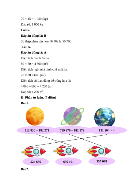 Bài 1. Nối hai kết quả tương ứng với nhau: (1 điểm) 512 830 + 182 271 131 164 × 4 739 270 – 182 172 557 098 524 656 695 101