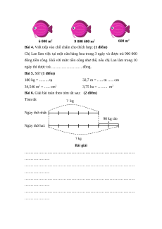Bài 5. Số? (1 điểm) 180 kg = …….. tạ 32,7 m = ….. m ….. cm 34,546 m2 = ….. cm2 3,75 ha = …….. m2