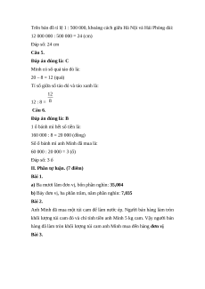 lệ 1 : 500 000, khoảng cách giữa Hà Nội và Hải Phòng dài số xăng-ti-mét là: (0,5 điểm) A. 240 cm B. 24 cm C. 2,4 cm D. 0,24 cm