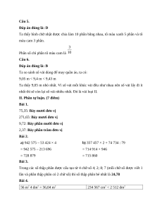 Vậy phân số lớn hơn 1 là Câu 4. Đáp án đúng là: A