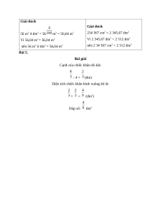 Bài 5. Một chiếc khăn hình vuông có chu vi là dm. Hỏi diện tích chiếc khăn đó