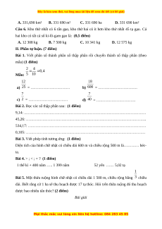 II. Phần tự luận. (7 điểm) Bài 1. a) = = 0,48 b) = = 0,03 c) = = 3,5 d) = = 0,175 Bài 2.