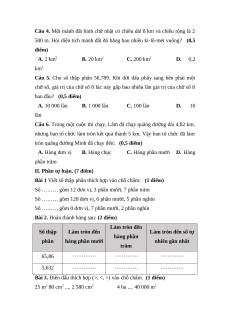 tròn quãng đường Minh đã chạy đến: (0,5 điểm) A. Hàng đơn vị B. Hàng chục C. Hàng phần mười D. Hàng phần trăm