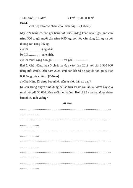 Bài 4. Viết tiếp vào chỗ chấm cho thích hợp: (1 điểm)