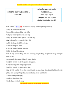 Môn: VẬT LÍ - LỚP 11 – BỘ CÁNH DIỀU – THỜI GIAN LÀM BÀI: 45 PHÚT Nội