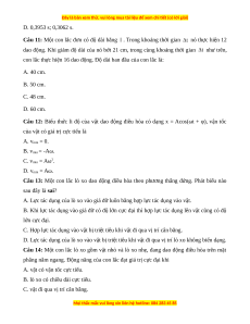 Câu 12: Biểu thức li độ của vật dao động điều hòa có dạng x = Acos(ωt + φ), vận tốc