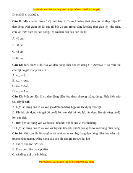 Đây là bản xem thử, vui lòng mua tài liệu để xem chi ết (có lời giải)