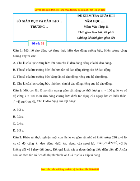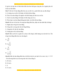Câu 1: Một hệ dao động cơ đang thực hiện dao động cưỡng bức. Hiện tượng cộng