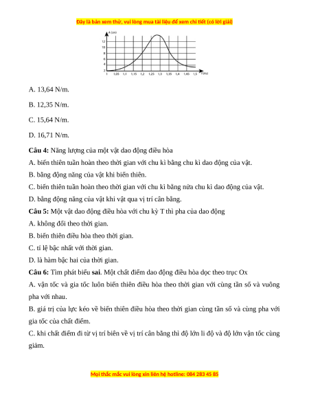 Câu 12: Biên độ dao động cưỡng bức không phụ thuộc vào