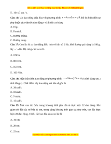 Câu 15: Một vật dao động điều hòa trên quỹ đạo thẳng dài 20 cm. Thời gian vật đi từ