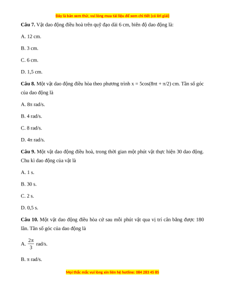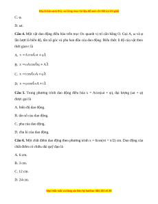 Câu 6. Một chất điểm dao động theo phương trình x = 6cos(πt + π/2) cm. Dao động của