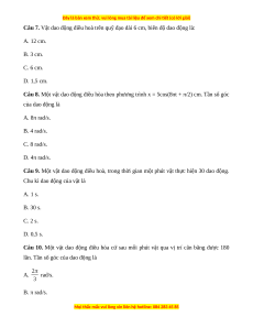 Câu 9. Một vật dao động điều hoà, trong thời gian một phút vật thực hiện 30 dao động.