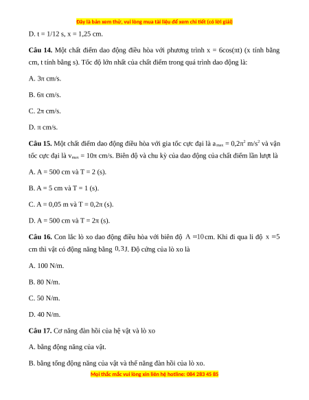 Đây là bản xem thử, vui lòng mua tài liệu để xem chi ết (có lời giải)