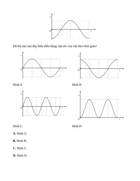 Đồ thị nào sau đây biểu diễn đúng vận tốc của vật theo thời gian? v v O t O t Hình A Hình B v v O t O t Hình C Hình D A. Hình A. B. Hình B. C. Hình C. D. Hình D.