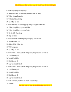 Câu 2. Công việc chủ yếu của chăm sóc rừng là: A. Xới đất và vun gốc B. Bón phân C. Dặm cây D. Cả 3 đáp án trên