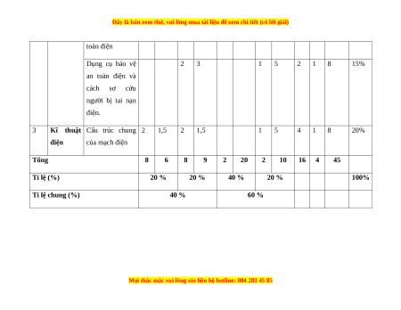Kĩ thuật Cấu trúc chung 2 1,5 2 1,5 1 5 4 1 8 20% điện của mạch điện Tổng 8 6 8 9 2 20 2 10 16 4 45 Tỉ lệ (%) 20 % 20 % 40 % 20 % 100% Tỉ lệ chung (%) 40 % 60 %