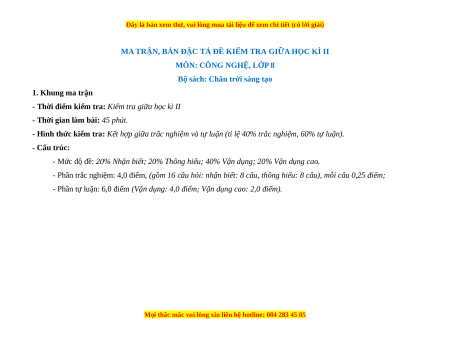- Tailieugiaovien.com.vn giới thiệu đề giữa kì 2 gồm đầy đủ ma trận và lời giải chi tiết môn Công nghệ 8 bộ Chân trời sáng tạo mới nhất năm 2023 nhằm giúp Giáo viên có thêm tài liệu tham khảo ra đề thi Công nghệ lớp 8.