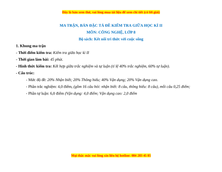 - Tailieugiaovien.com.vn giới thiệu 2 đề giữa kì 2 gồm đầy đủ ma trận và lời giải chi tiết môn Công nghệ 8 Kết nối tri thức mới nhất năm 2023 nhằm giúp Giáo viên có thêm tài liệu tham khảo ra đề thi Công nghệ lớp 8.