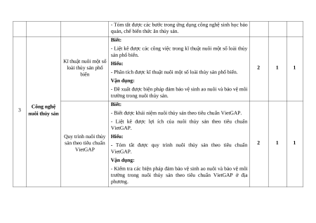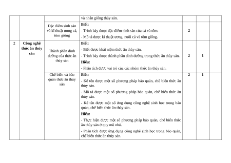 - Mô tả được kĩ thuật ương, nuôi cá và tôm giống. 2 Công nghệ Biết: thức ăn thủy Thành phần dinh