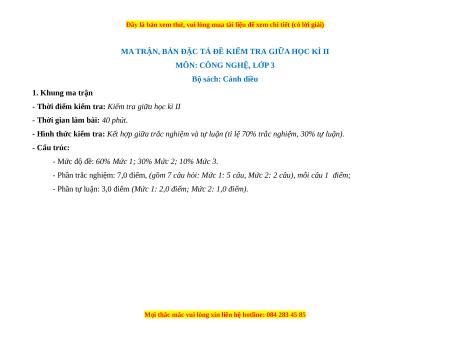 - Tailieugiaovien.com.vn giới thiệu đề thi giữa kì 2 gồm đầy đủ ma trận và lời giải chi tiết môn Công nghệ lớp 3 Cánh diều mới nhất nhằm giúp Giáo viên có thêm tài liệu tham khảo ra đề thi Công nghệ lớp 3.