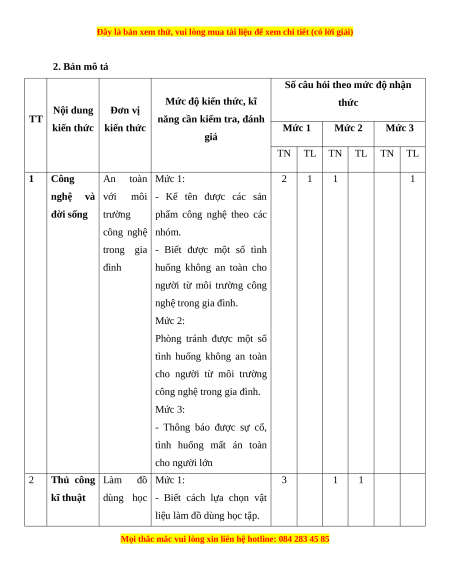 kiến thức kiến thức Mức 1 Mức 2 Mức 3 giá TN TL TN TL TN TL 1 Công An toàn Mức 1: 2 1 1 1